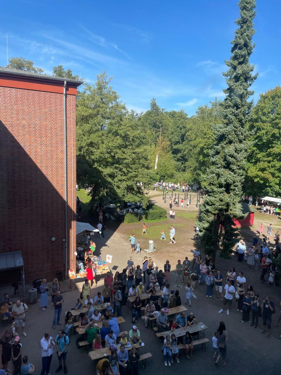 Das Wetter spielte mit und bescherte nochmals sommerliche Temperaturen mit viel Sonnenschein. Unter den Gästen des Festes waren wieder viele "Ehemalige" der Schule zu sehen und zu begrüßen. Wegen der Baumaßnahmen im Sportplatzbereich fand das Fest in diesem Jahr auf dem Grundschulhof statt, wo alle Spiel- und Essstände pünktlich zum Beginn um 10:00 Uhr ihren Platz gefunden hatten und man auch immer wieder bis 14:00 Uhr den musikalischen Beiträgen am "Bühnenplatz" lauschen konnte. Auch im Innenhof vor dem Gebäudetrakt herrschte geselliges Treiben und gute Stimmung. Allen Heferinnen und Helfern sei für ihren Einsatz bei dem Fest gedankt. Am Ende des Tages konnte sich der Förderverein der Salvatorschule über einen Erlös von 6.763,95€ aus den Standeinnahmen und Spenden freuen. Dieses Geld kommt letztlich wieder unseren Schülerinnen und Schülern zugute. P.B.