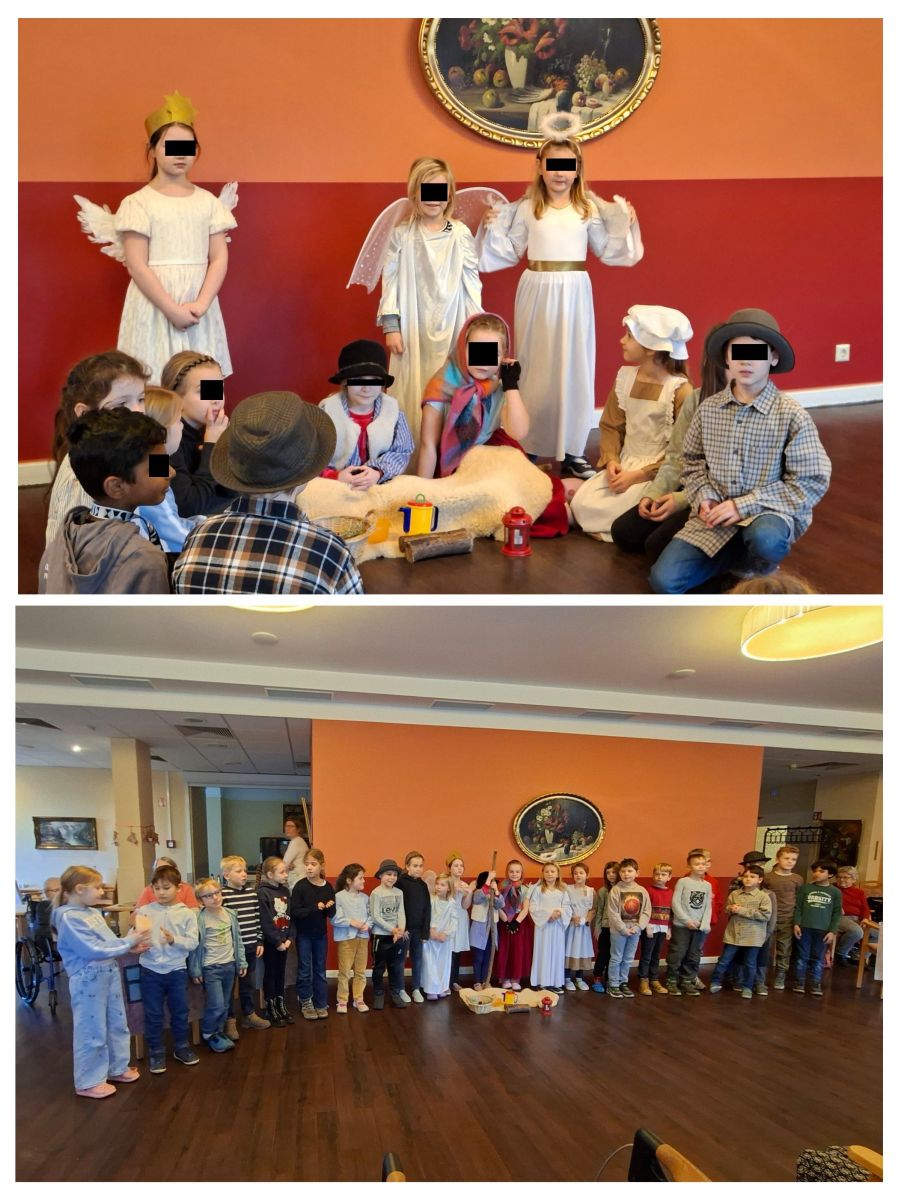 und ihnen ein wunderschönes Krippenspiel, fröhliche Adventslieder und eine stimmungsvolle Klanggeschichte dargeboten, was für alle wieder ein sehr bereicherndes und berührendes Erlebnis war. Mit riesigem Applaus und einem großen Schokonikolaus beschenkt wurde die Klasse 2b schließlich mit der Bitte verabschiedet, bald wiederzukommen...was wir natürlich gerne machen werden. S.B.